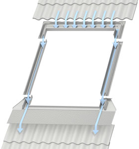Určené pre samostatne osadené strešné okno do profilovanej strešnej krytiny s výškou profilu do 120 mm (napr. rôzne druhy škridiel, vlnité a plechové šablóny) a pre plochú strešnú krytinu s hrúbkou viac ako 16 mm (napr. bobrovka, drevený šindeľ). | ![]() |